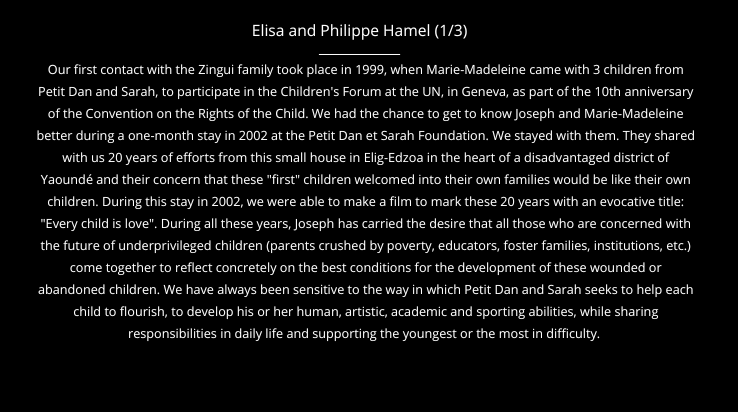 Joseph Désiré ZINGUI was a deeply good man. Alongside his wife Marie-Madeleine ZINGUI with whom he founded Petit Dan and Sarah, he dedicated his life to the protection, education and well-being of the most vulnerable children. Since the creation of this Center for Educational and Social Actions in 1982, and until his last breath, he has not stopped fighting to offer every child a healthy living environment, where "Every child is love".