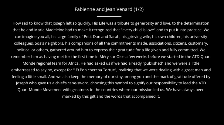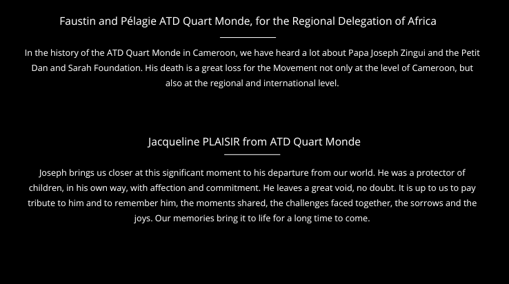 Tribute to Joseph Désiré ZINGUI, Founder of Petit Dan and Sarah