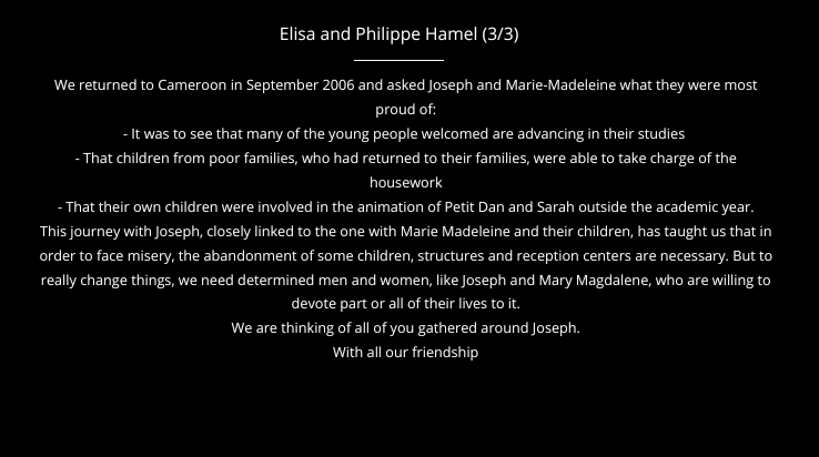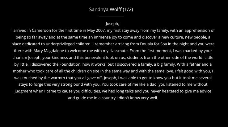 On June 10, 2025, following a short illness, Joseph Désiré left us. His funeral was an opportunity to finalize and broadcast a documentary started by the founder in 2024, presenting the work of his life and testifying to his commitment alongside orphaned and vulnerable children.